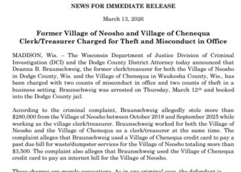 The Wisconsin Department of Justice Division of Criminal Investigation and the Dodge County District Attorney announced charges against Deanna B.… Read More