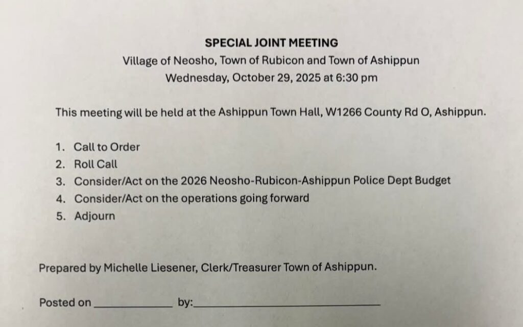 Posted on October 28, 2025 by Joseph Kelsey Special joint meeting Special joint meeting at Ashippun Town hall